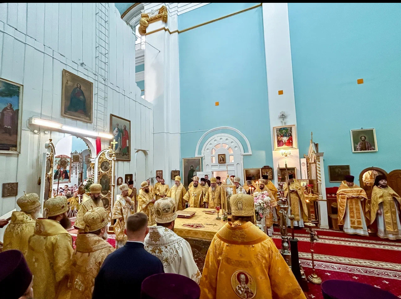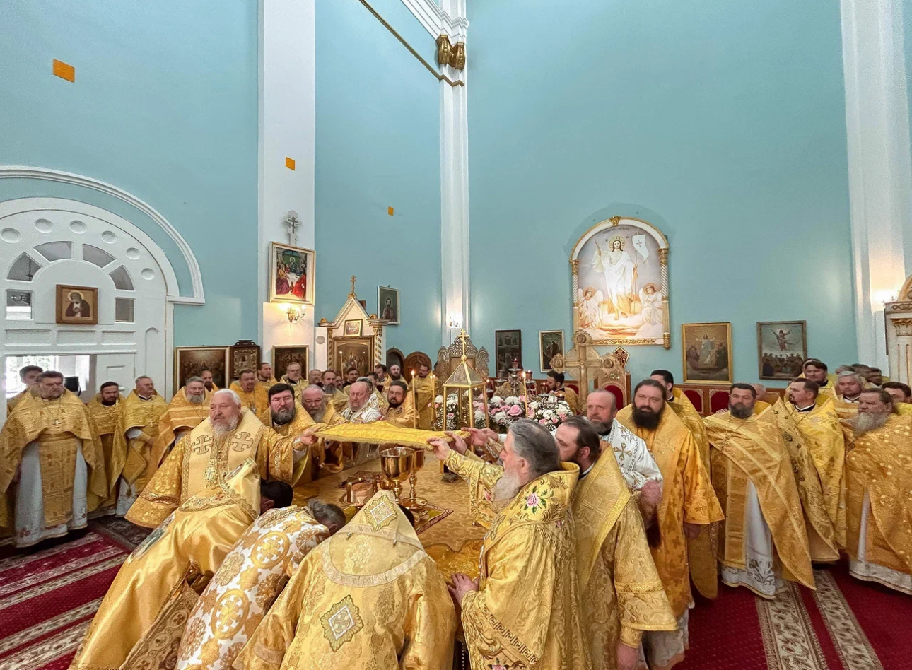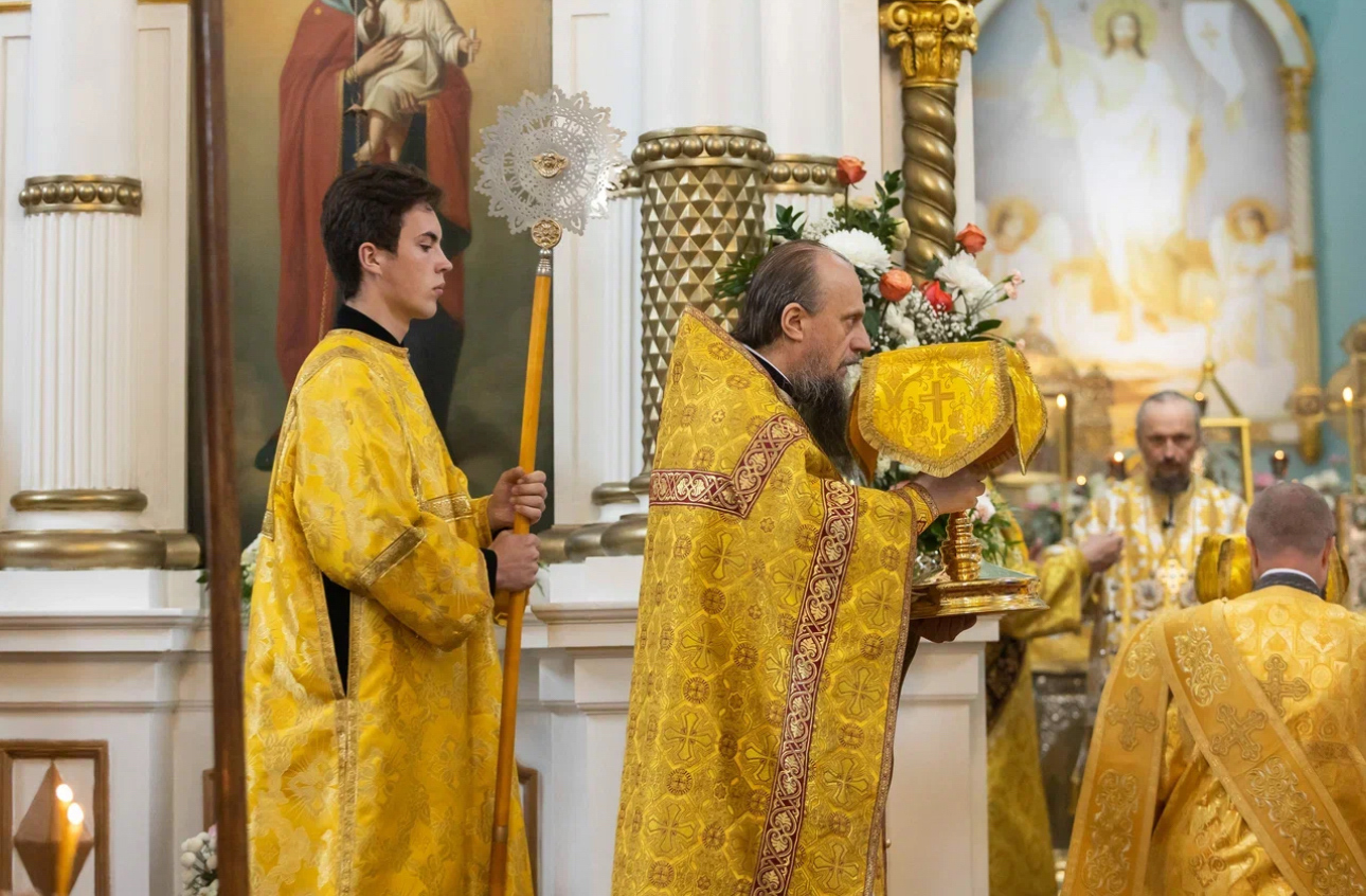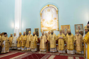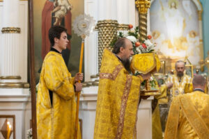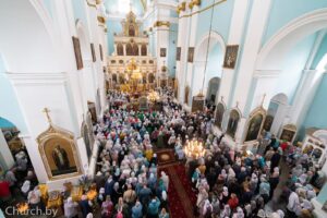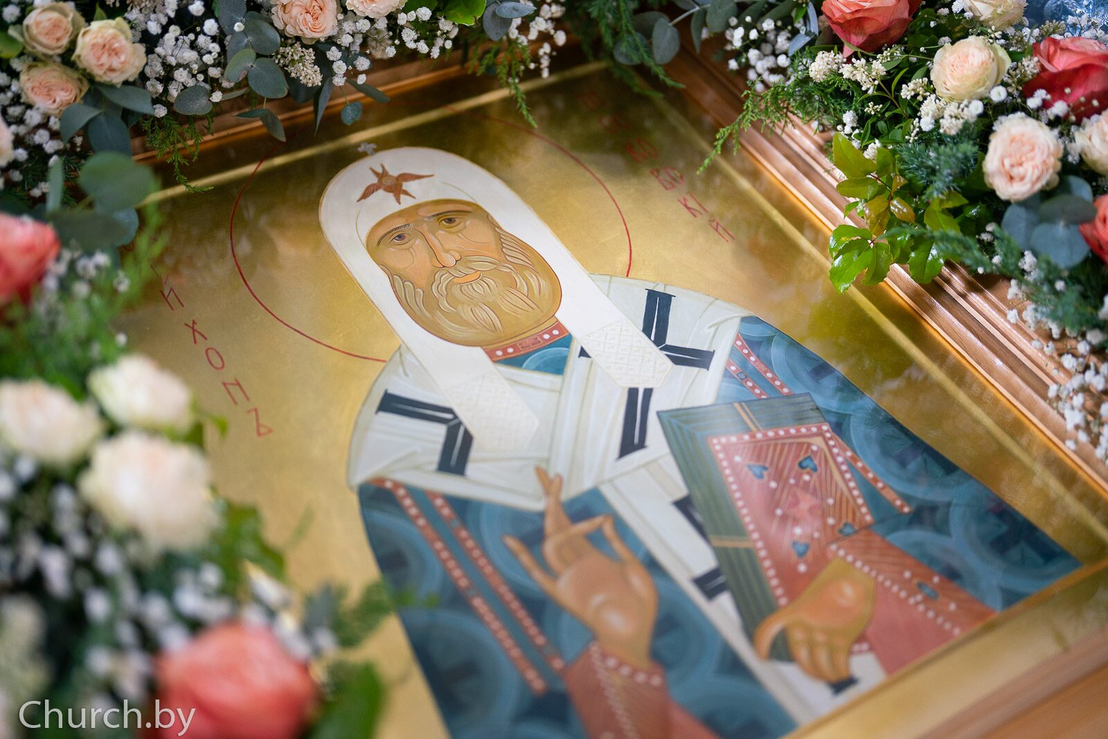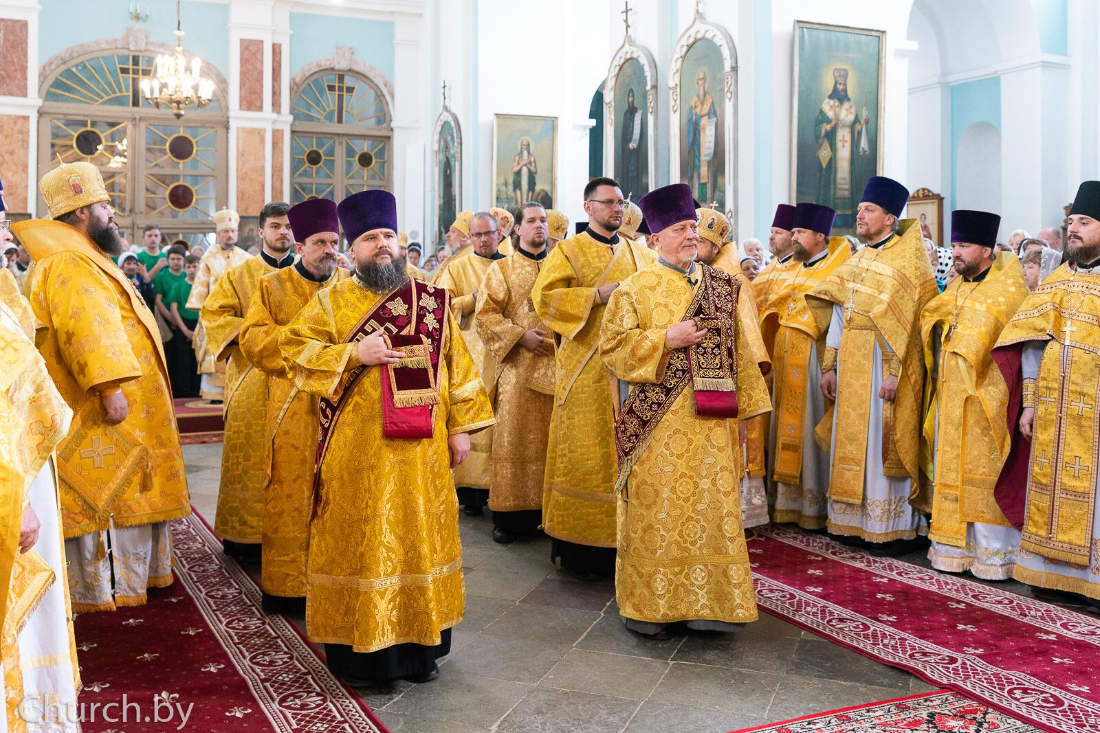 Божественную литургию в соборе возглавил Митрополит Минский и Заславский Вениамин, Патриарший Экзарх всея Беларуси. Его Высокопреосвященству сослужили Митрополит Смоленский и Дорогобужский Исидор; Митрополит Псковский и Порховский Матфей; викарий Патриаршего Экзарха всея Беларуси епископ Несвижский Авксентий; архиепископ Витебский и Оршанский Димитрий; архиепископ Гомельский и Жлобинский Стефан; архиепископ Гродненский и Волковысский Антоний; епископ Бобруйский и Быховский Серафим; епископ Туровский и Мозырский Леонид; епископ Молодечненский и Столбцовский Павел; епископ Лидский и Сморгонский Порфирий; епископ Полоцкий и Глубокский Игнатий; епископ Борисовский и Марьиногорский Амвросий; ректор Академии архимандрит Афанасий (Соколов) и духовенство Белорусской Православной Церкви.