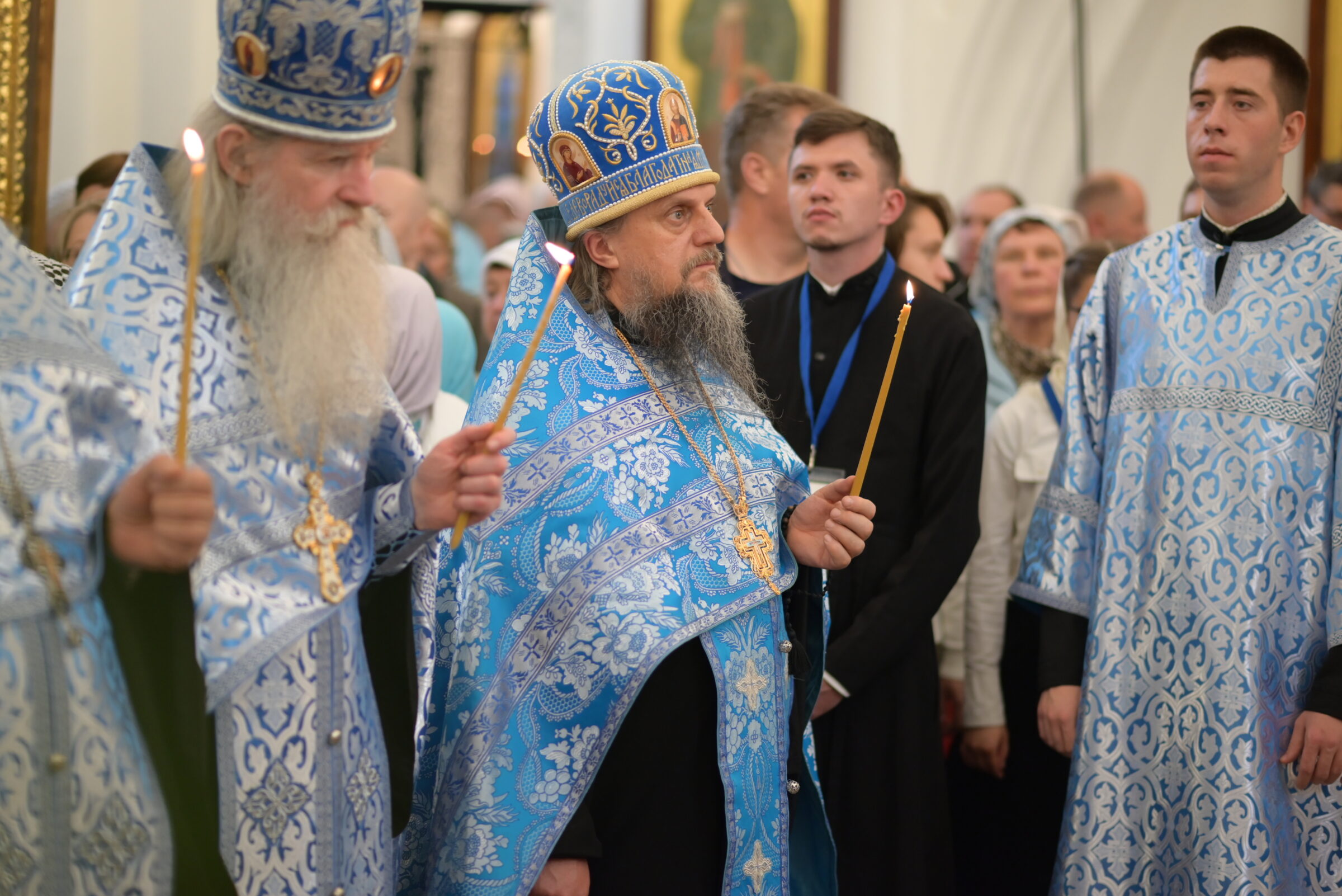За богослужением молилось большое количество людей, приехавших со всех уголков Беларуси, а также участники IV Всебелорусского крестного хода «Жировичи-Минск» и прихожане кафедрального собора.