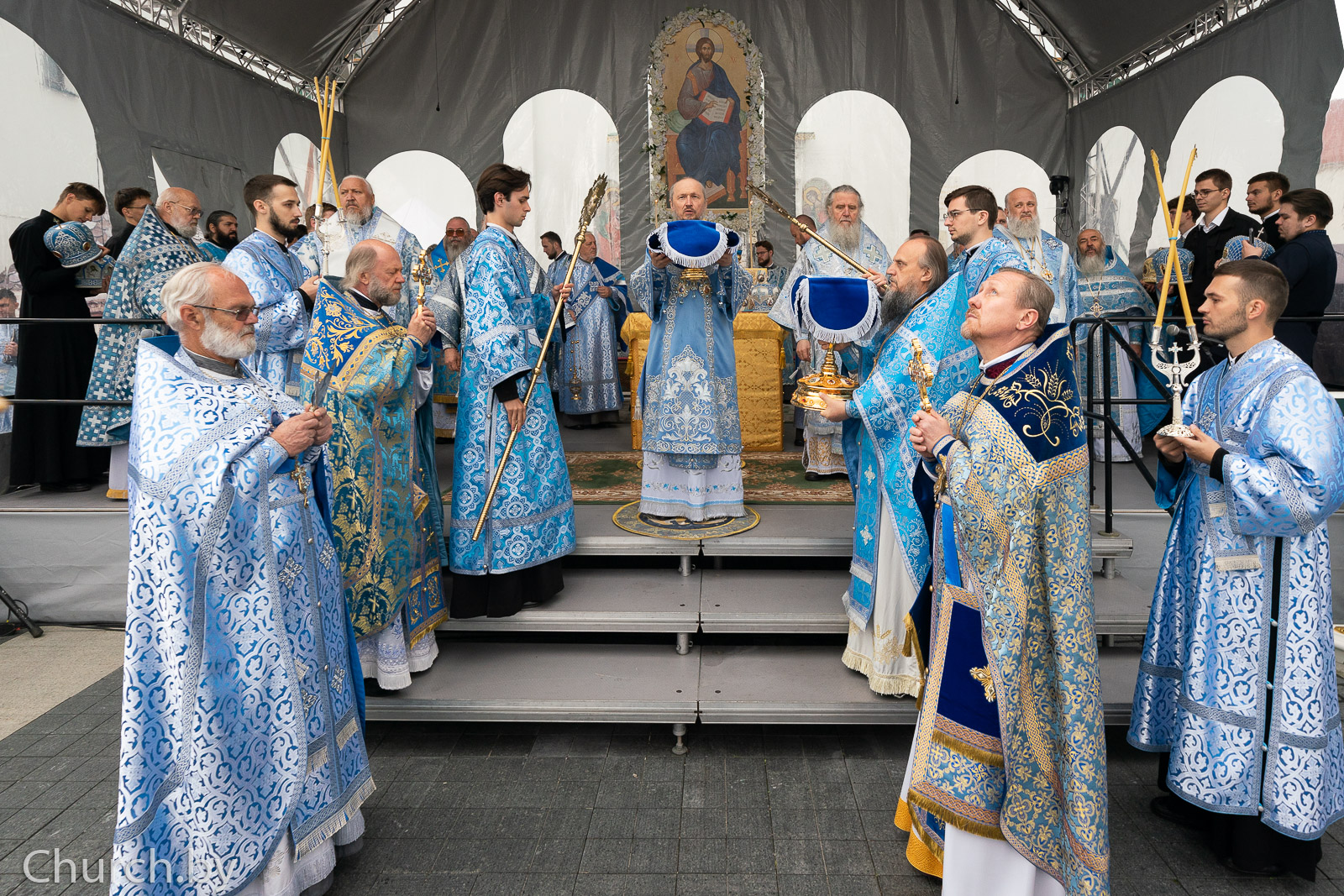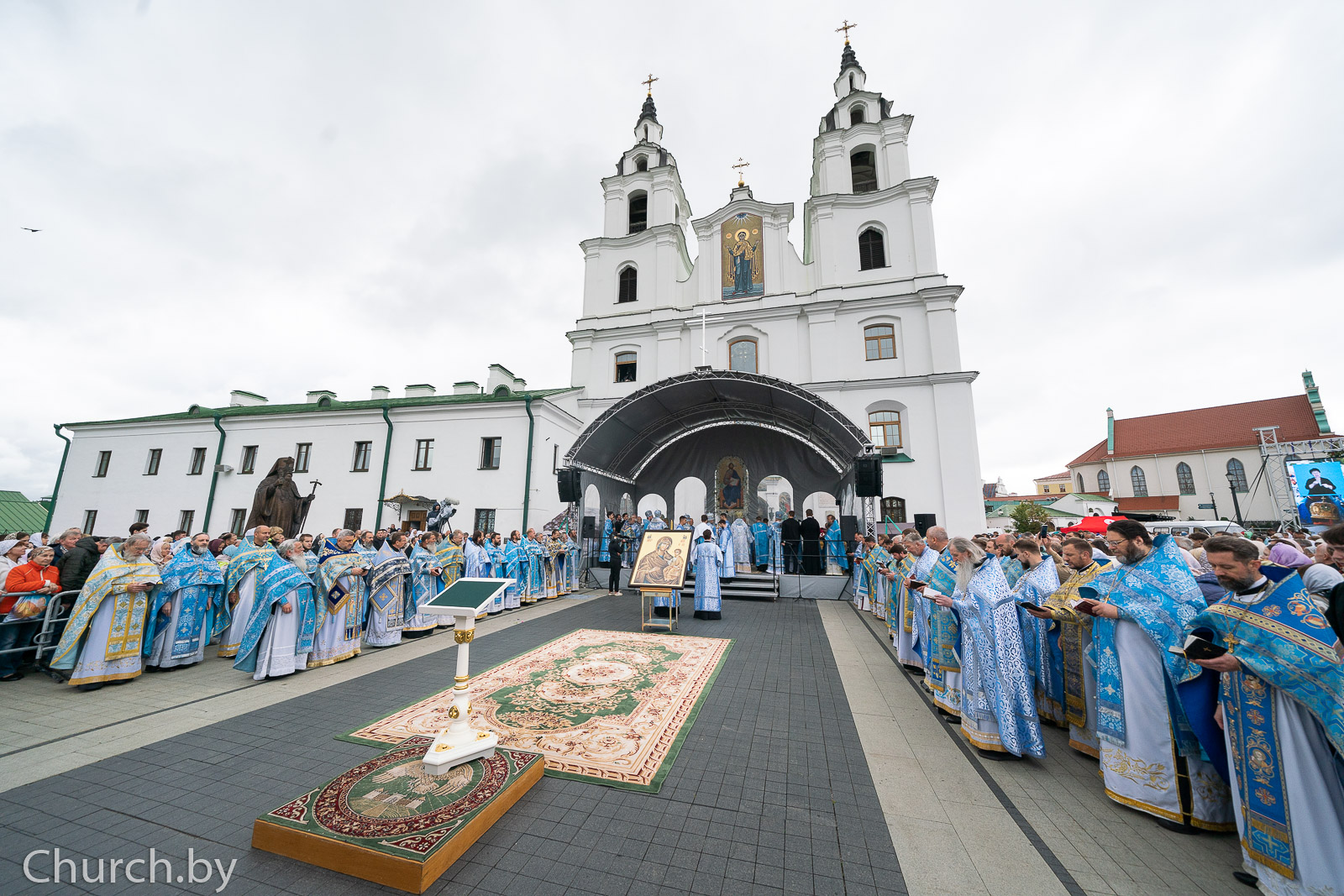 Торжества начались с всенощного бдения 25 августа и на следующий день продолжились уже у стен кафедрального собора Божественной литургией, которую возглавил митрополит Минский и Заславский Вениамин, Патриарший Экзарх всея Беларуси. Ему сослужило духовенство Белорусской Православной Церкви, в числе которых был ректор Минской духовной академии архимандрит Афанасий (Соколов), проректор по воспитательной работе иеромонах Андрей (Василюк), другие представители Академии и многочисленные гости в священном сане.