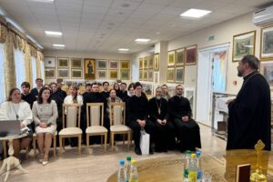 2 октября 2025 года в Гомельское епархиальное управление прибыла делегация студентов Минской духовной академии во главе с проректором по воспитательной работе иеромонахом Андреем (Василюком). По сложившейся традиции студенты совершают паломнические и ознакомительные поездки в различные епархии Белорусской Православной Церкви, где знакомятся с опытом пастырского и миссионерского служения, деятельностью церковных отделов и духовных центров.