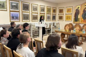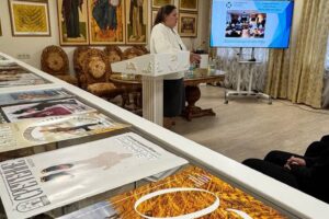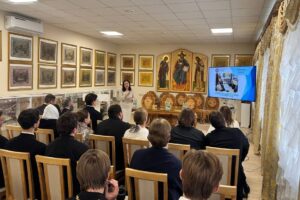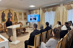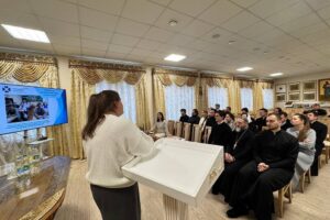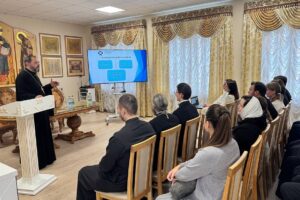 В программу визита вошло также посещение информационного отдела епархии. Здесь студенты встретились с архиепископом Гомельским и Жлобинским Стефаном. Владыка пообщался с будущими пастырями, поделился своим опытом, ответил на вопросы о приходской жизни и церковном управлении. Сотрудники отдела рассказали о просветительских проектах, над которыми работает епархия, показали медиаматериалы и разработки, которые могут быть полезны в приходской практике.