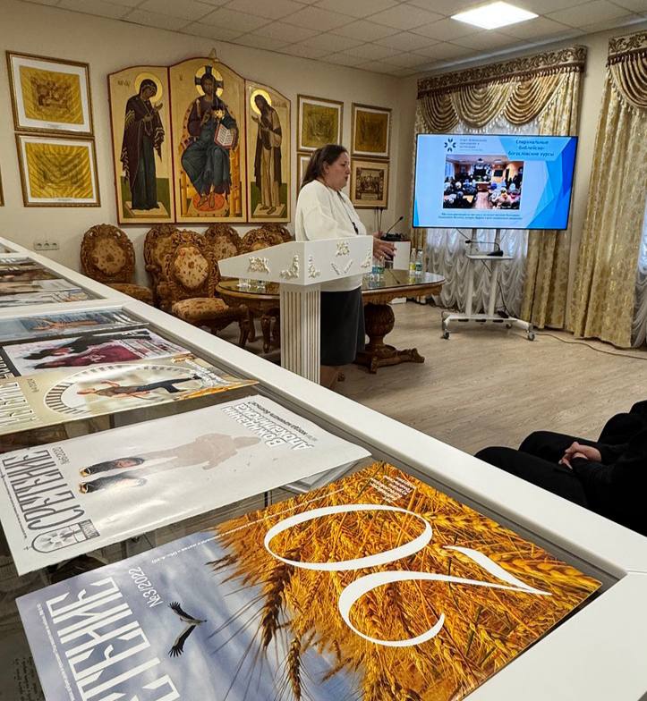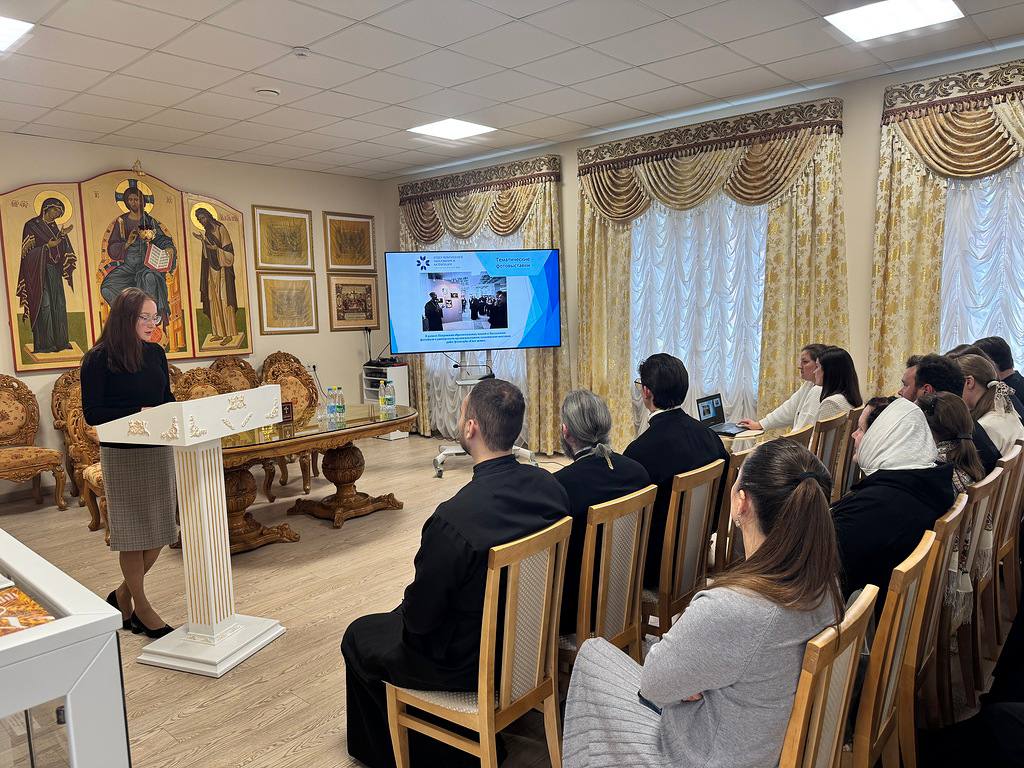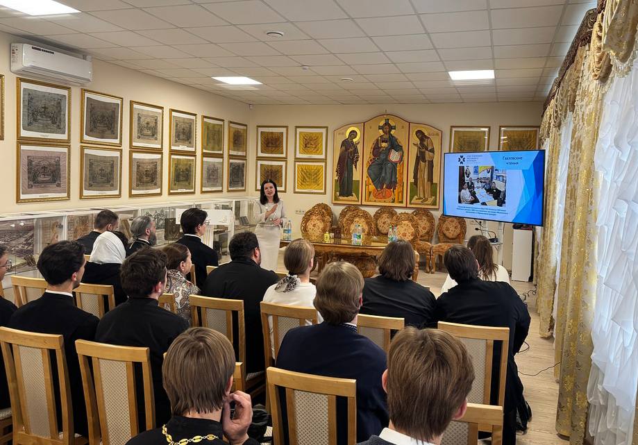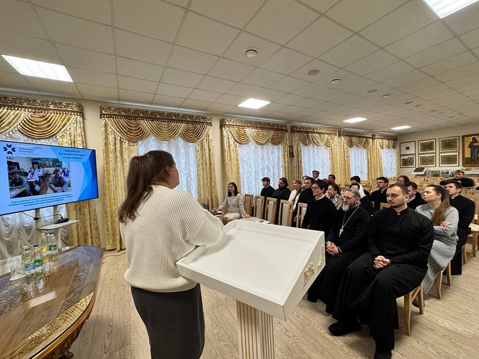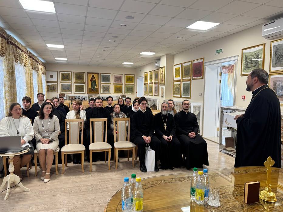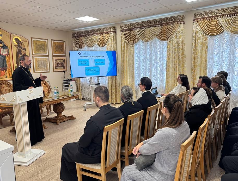 В программу визита вошло также посещение информационного отдела епархии. Здесь студенты встретились с архиепископом Гомельским и Жлобинским Стефаном. Владыка пообщался с будущими пастырями, поделился своим опытом, ответил на вопросы о приходской жизни и церковном управлении. Сотрудники отдела рассказали о просветительских проектах, над которыми работает епархия, показали медиаматериалы и разработки, которые могут быть полезны в приходской практике.