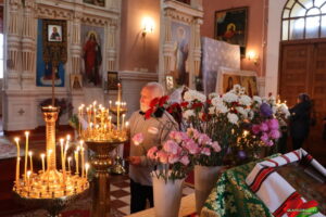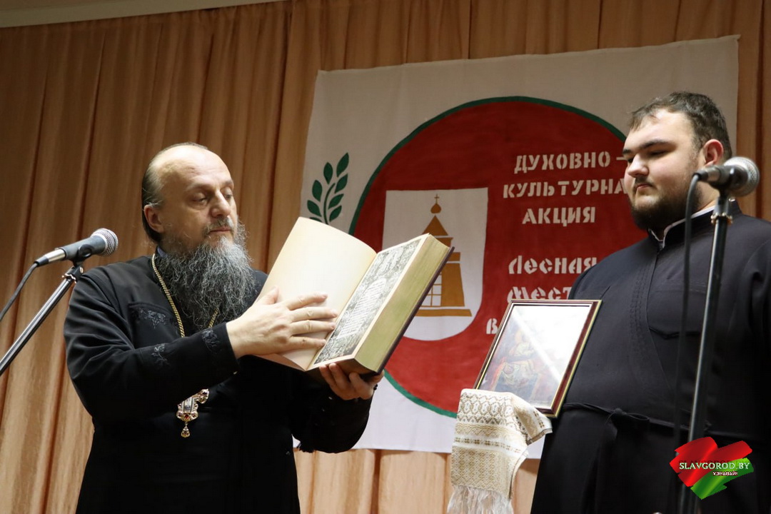 Архимандрит Афанасий возглавил Божественную литургию в храме-памятнике святых апостолов Петра и Павла. Затем участники богослужения крестным ходом вышли к памятнику в честь победы при Лесной («Орел»). После заупокойной литии там состоялся митинг. В нем приняли участие официальные лица Славгородского районного исполнительного комитета, представительства Россотрудничества в Республике Беларусь, ветераны труда, молодежь и школьники, прихожане, гости. Минскую духовную академию представляли выпускник магистратуры диакон Никита Дейнека, студенты 1-го курса Арсений Автушенко и Иван Воронко.