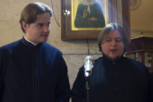 Богослужебные песнопения на всенощном бдении исполнила хоровая группа Свято-Духова кафедрального собора города Минска, а на Божественной литургии — мужской хор Академии под управлением Арсения Автушенко.