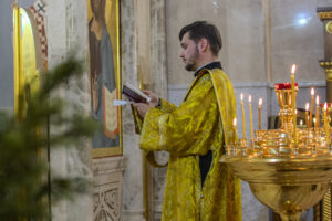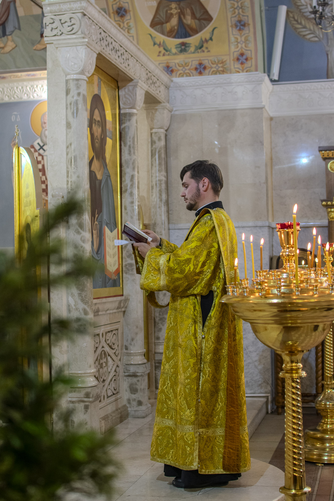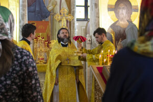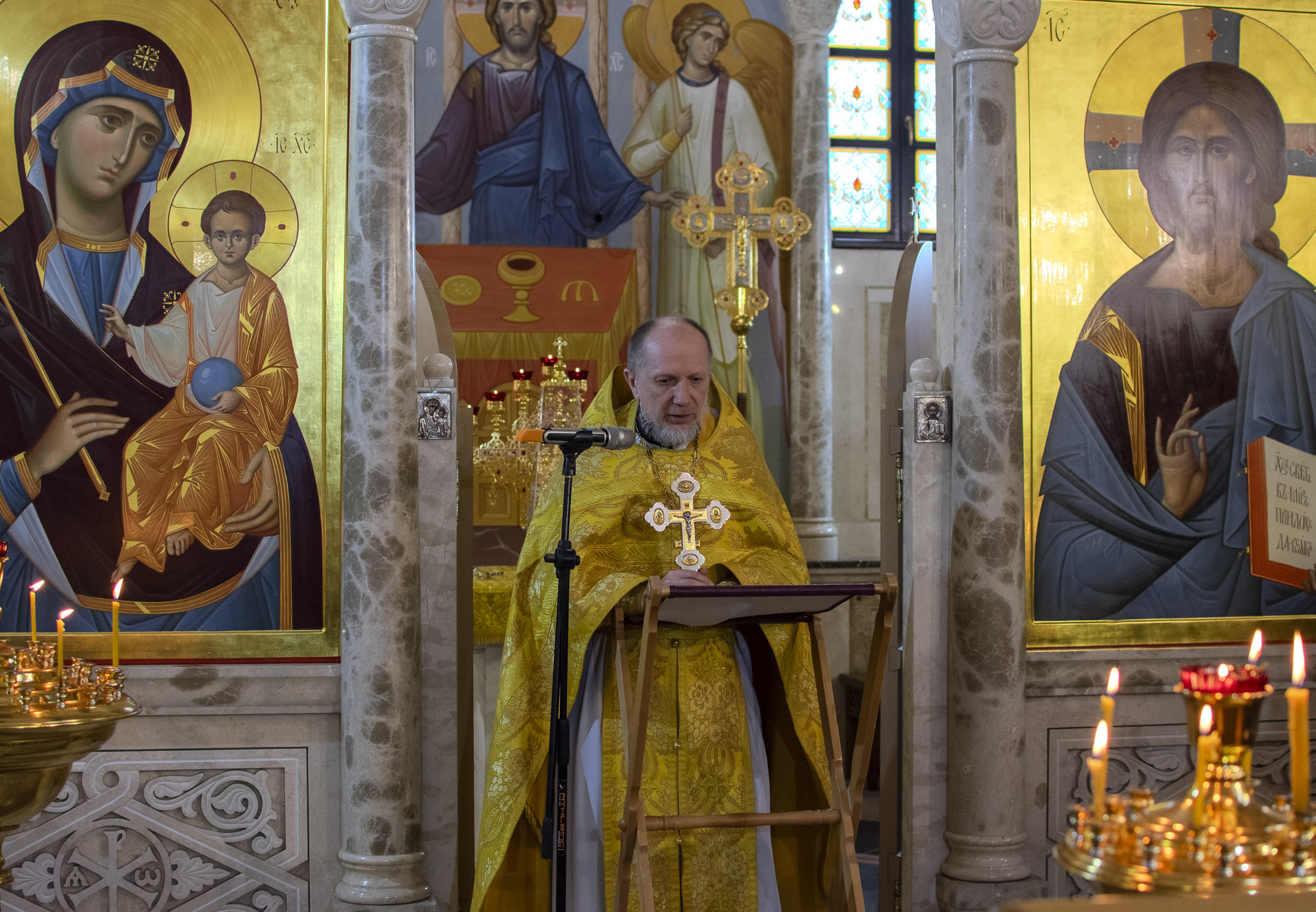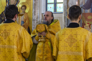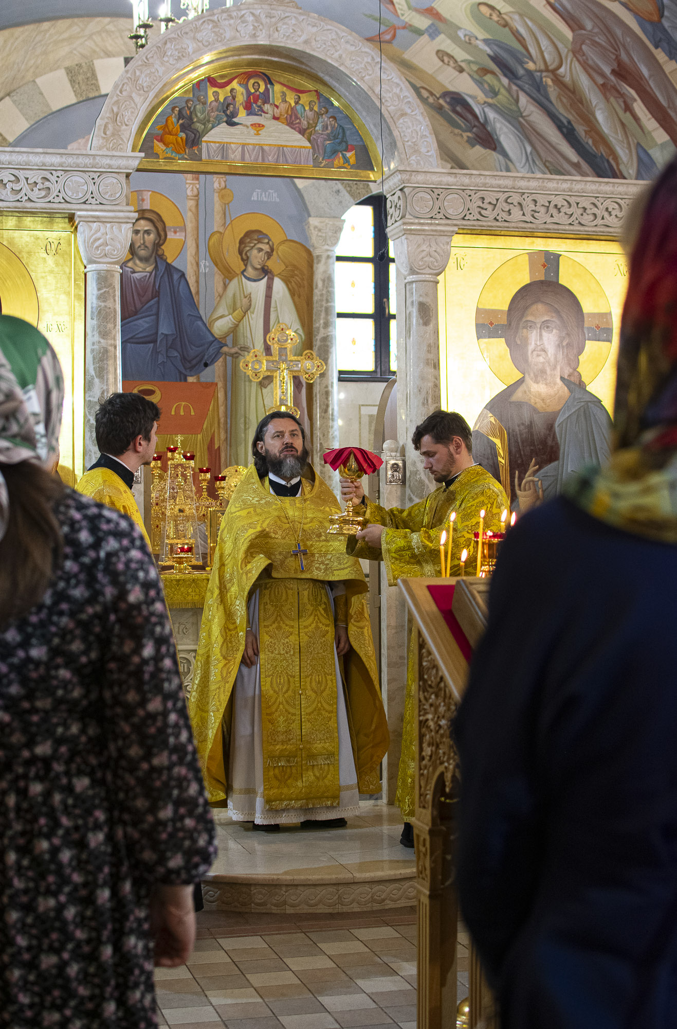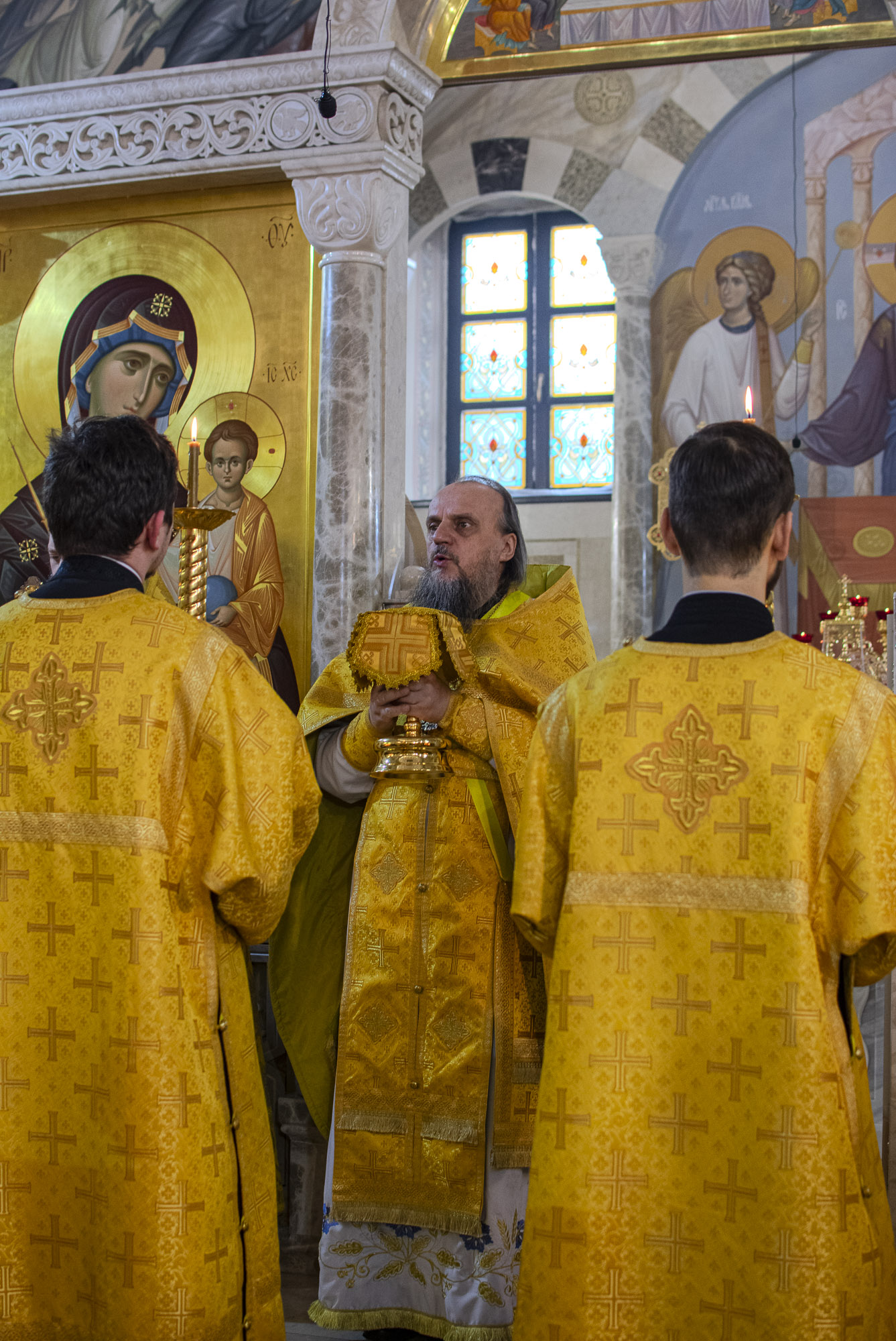 По окончании Божественной литургии было совершено молебное пение. Далее иерей Константин Голубев обратился к присутствующим со словом назидания.