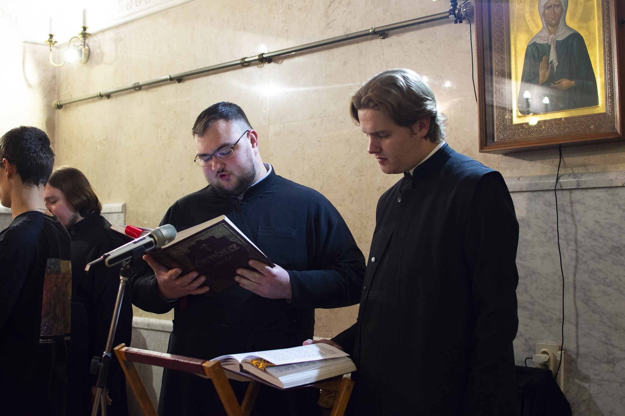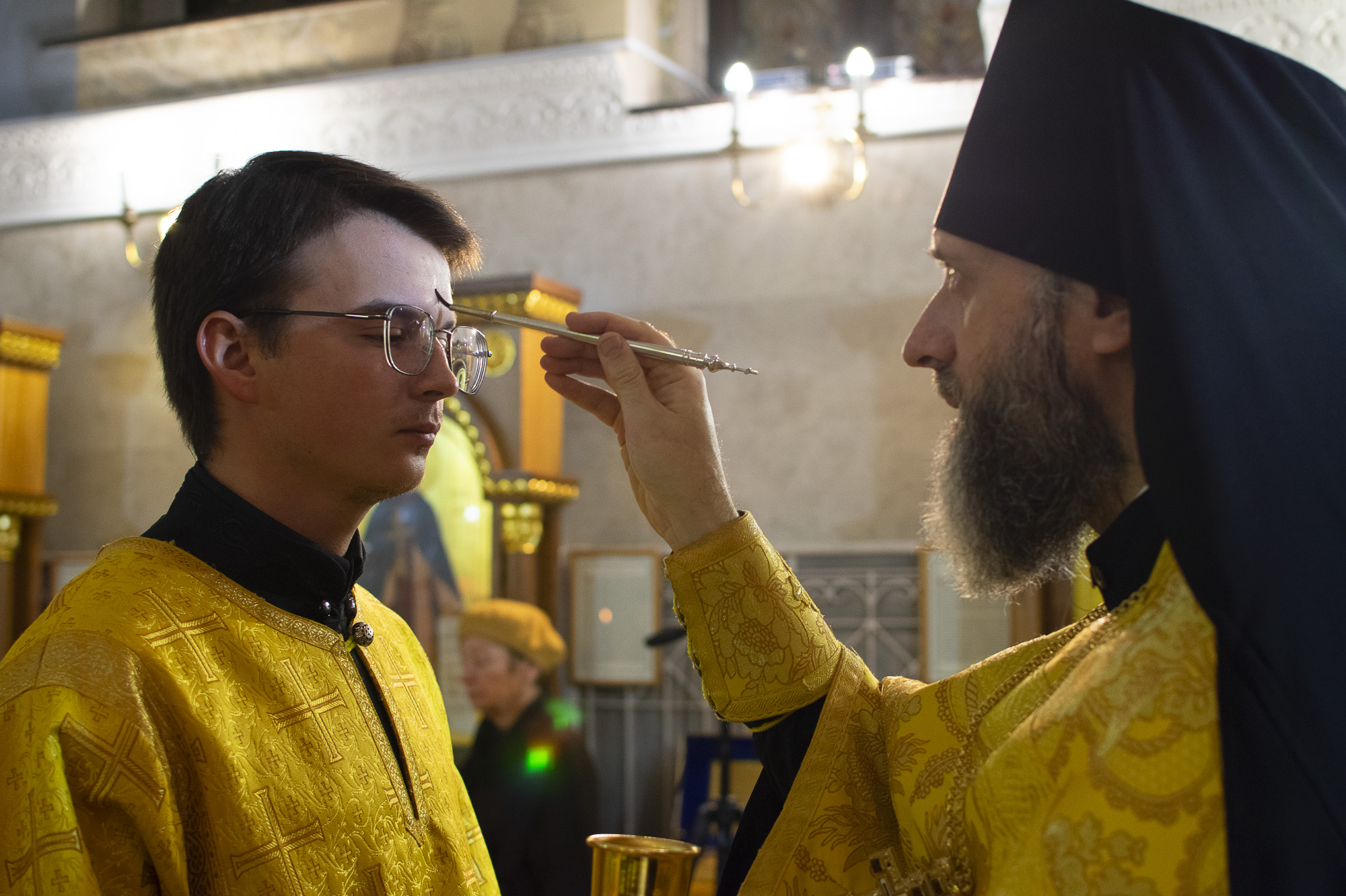 Песнопения исполнил мужской хор Академии под управлением Арсения Автушенко.