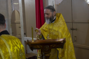 По окончании Божественной литургии было совершено молебное пение. Далее иеромонах Андрей (Василюк) обратился к присутствующим со словом назидания.