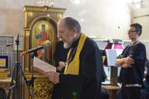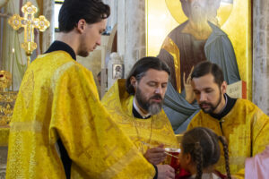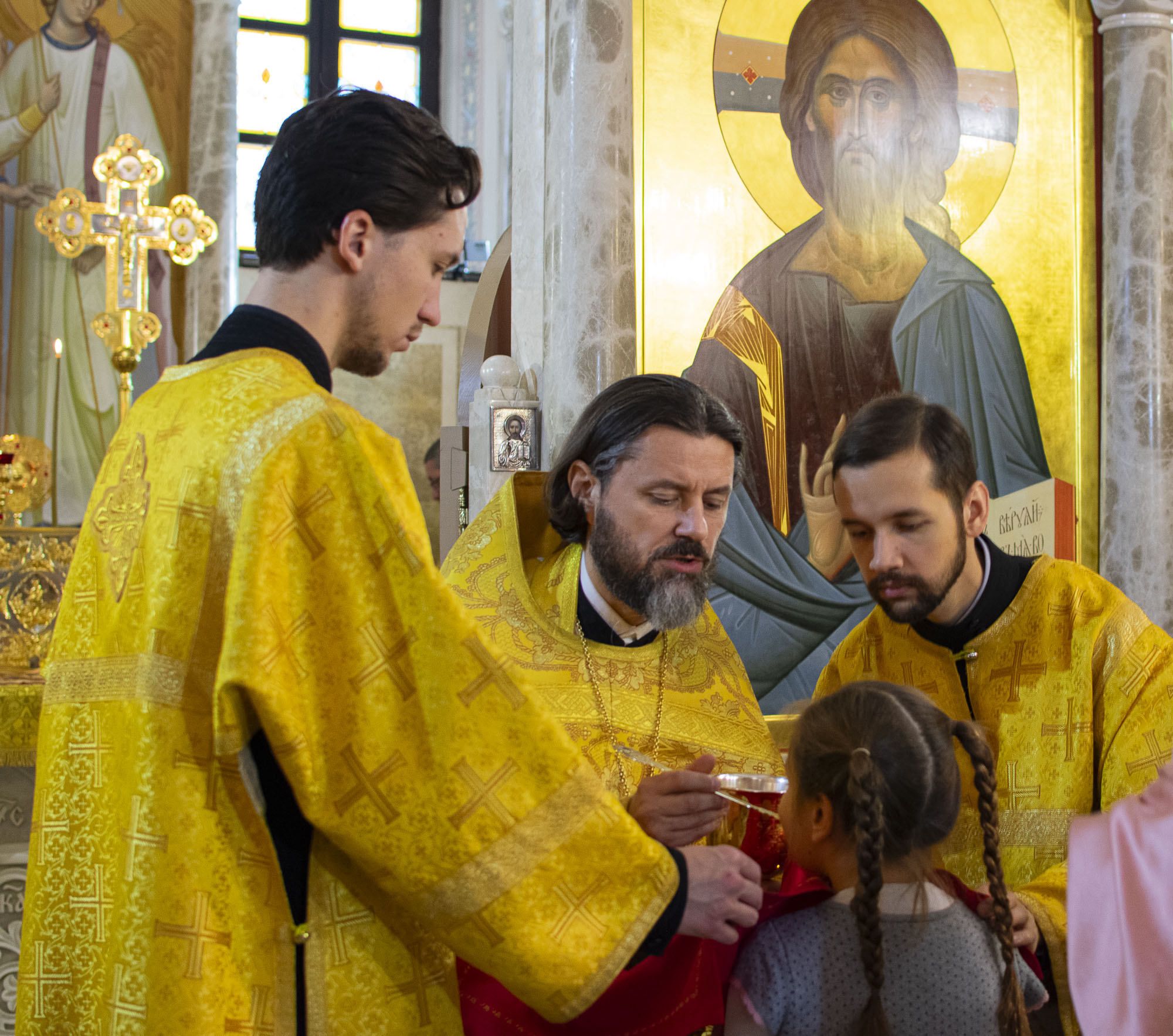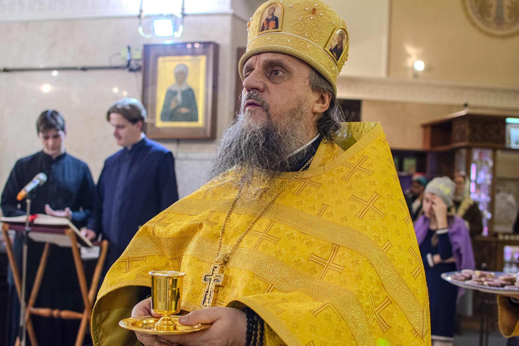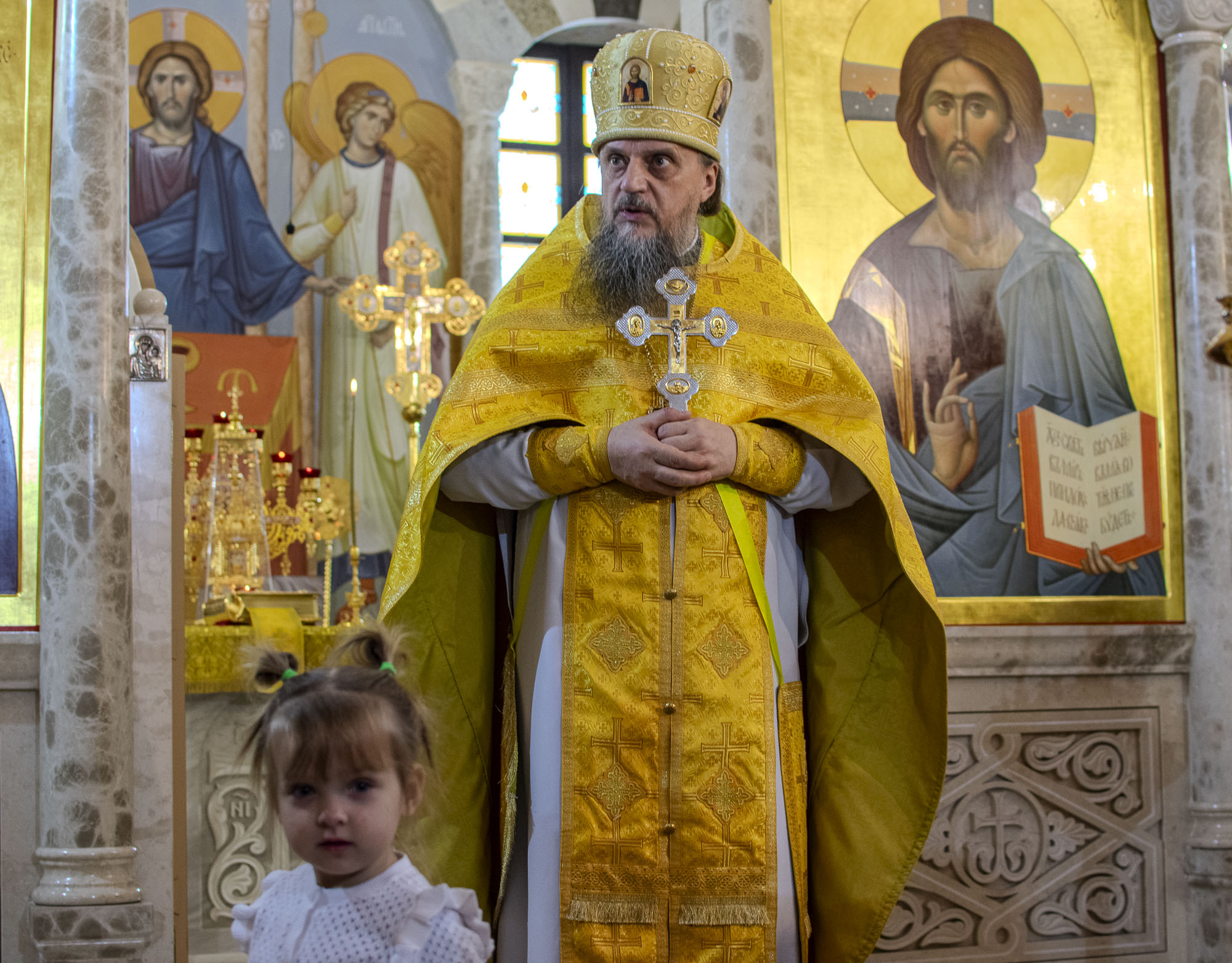 По окончании Божественной литургии было совершено молебное пение. Далее архимандрит Афанасий обратился к присутствующим со словом назидания.