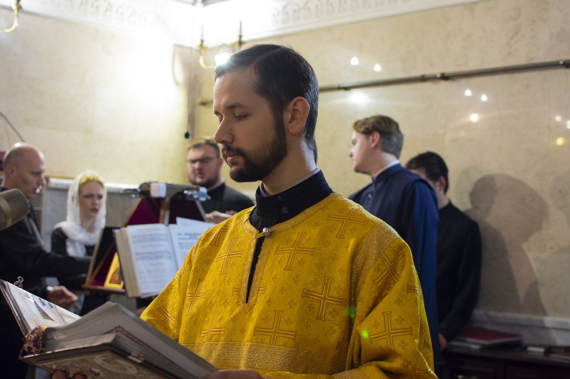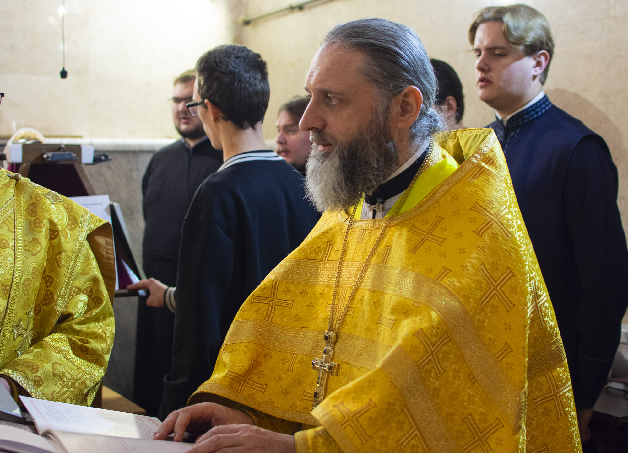 Песнопения исполнил мужской хор Академии под управлением Арсения Автушенко.