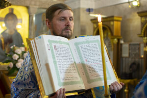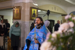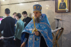 По окончании Божественной литургии было совершено молебное пение. Далее архимандрит Афанасий обратился к присутствующим со словом назидания.
