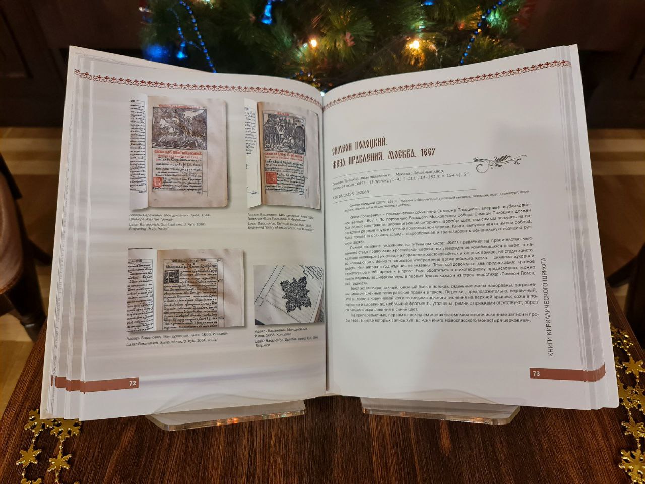 Особое место отводится памятникам славянской книжности, в том числе книгам белорусских типографий Великого княжества Литовского, таким как: «Грамматика» (1648) Мелетия Смотрицкого, «Жезл правления» (1667) Симеона Полоцкого, «Октоих» Иоанна Дамаскина (1646), «Трефологион» (1647), «Лексикон славеноросский» (1653) и др.