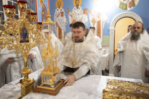 Отец ректор принял участие в освящение престола новопостроенного храма в честь святителя Василия Великого. Священнодействовал архиепископ Гомельский и Жлобинский Стефан в сослужении епископа Борисовского и Марьиногорского Амвросия и духовенства Гомельской епархии. Затем в храме была совершена Божественная Литургия, а по ее окончании – молебен и крестный ход. Завершилось торжество награждением благотворителей и прихожан, потрудившихся над созиданием новой святыни.
