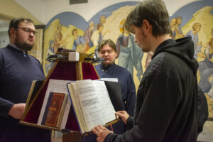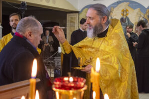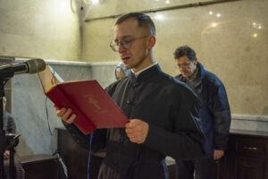 Всенощное бдение и Божественную литургию возглавил проректор по воспитательной работе иеромонах Андрей (Василюк). Ему сослужили иереи Виктор Кулага и Константин Голубев.