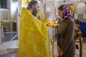 По окончании Божественной литургии было совершено молебное пение. Далее иеромонах Андрей (Василюк) обратился к присутствующим со словом назидания.