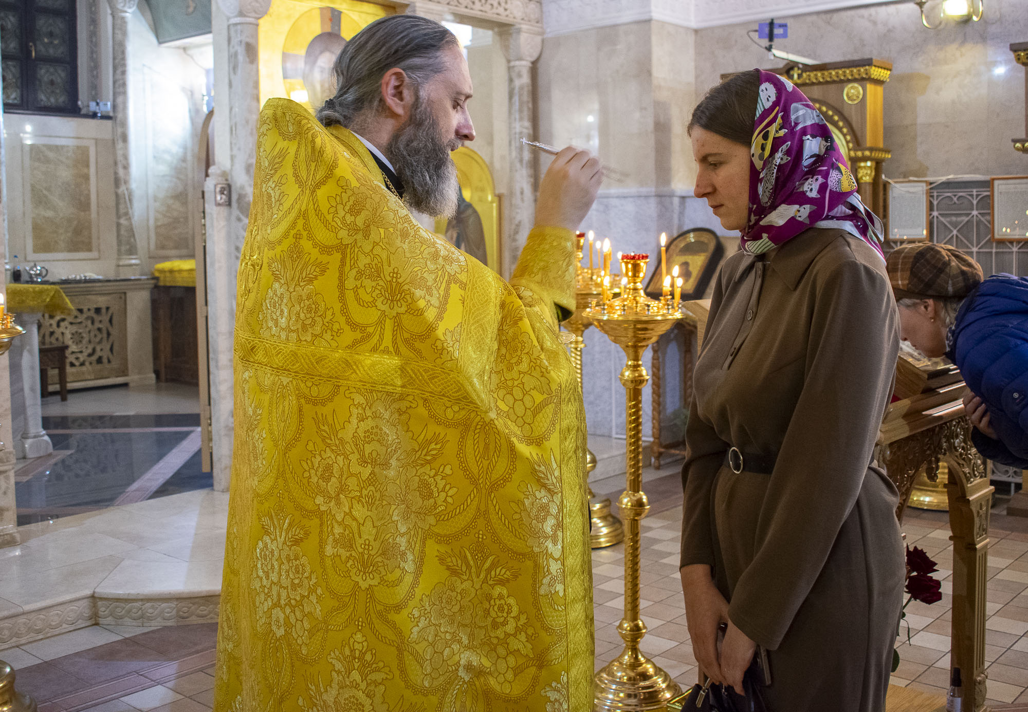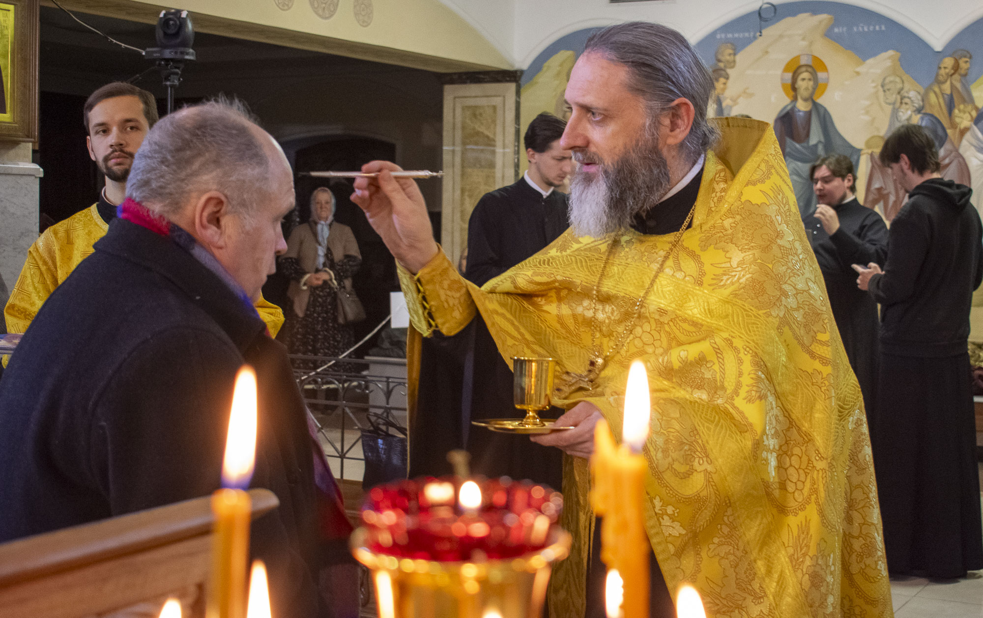 Всенощное бдение и Божественную литургию возглавил проректор по воспитательной работе иеромонах Андрей (Василюк). Ему сослужили иереи Виктор Кулага и Константин Голубев.