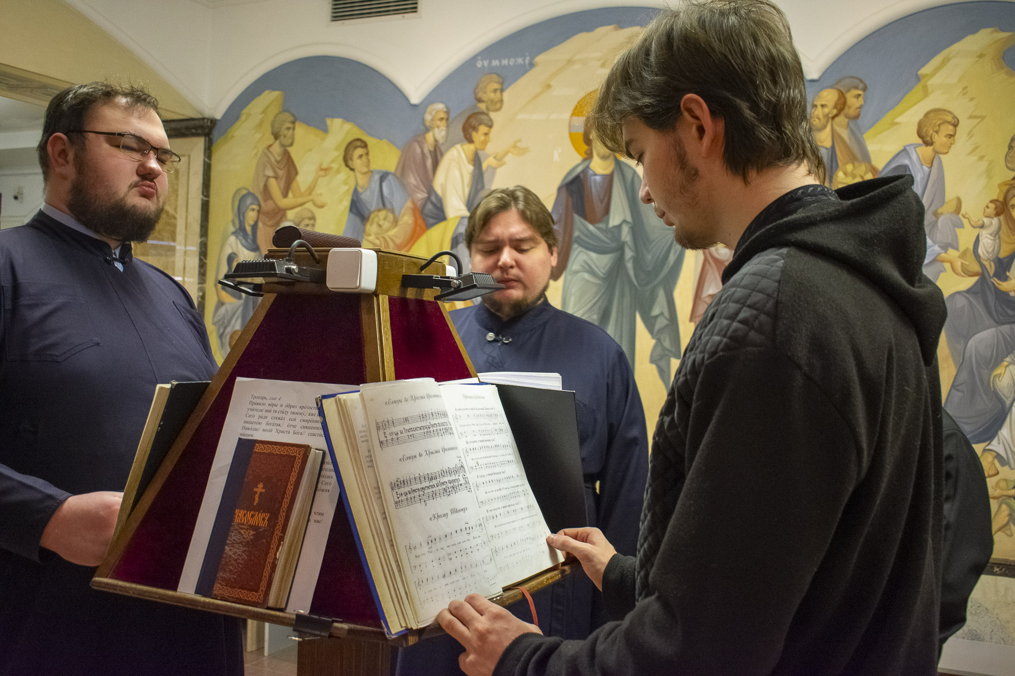 Богослужебные песнопения исполнил мужской хор Академии под управлением Арсения Автушенко.
