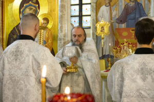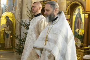 Богослужения возглавил ректор Академии архимандрит Афанасий (Соколов). Ему сослужили проректор по воспитательной работе иеромонах Андрей (Василюк), иереи Виктор Кулага и Константин Голубев, а также диакон Серафим Башкиров (за Божественной литургией святителя Василия Великого), протодиакон Вадим Зарьков (за всенощным бдением и праздничной Божественной литургией).