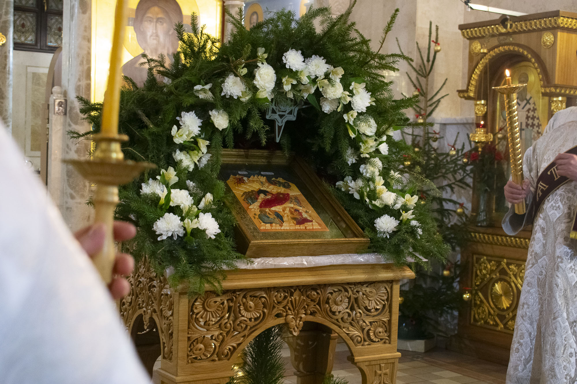 5 января вечером и 6 января утром совершались богослужения Рождественского сочельника: Малое повечерие с каноном предпразднства Рождества Христова «Волною морскою…», царские часы и вечерня в соединении с литургией святителя Василия Великого. 6 января вечером и в ночь на 7 января – богослужения праздника Рождества Христова: всенощное бдение и Божественная литургия.