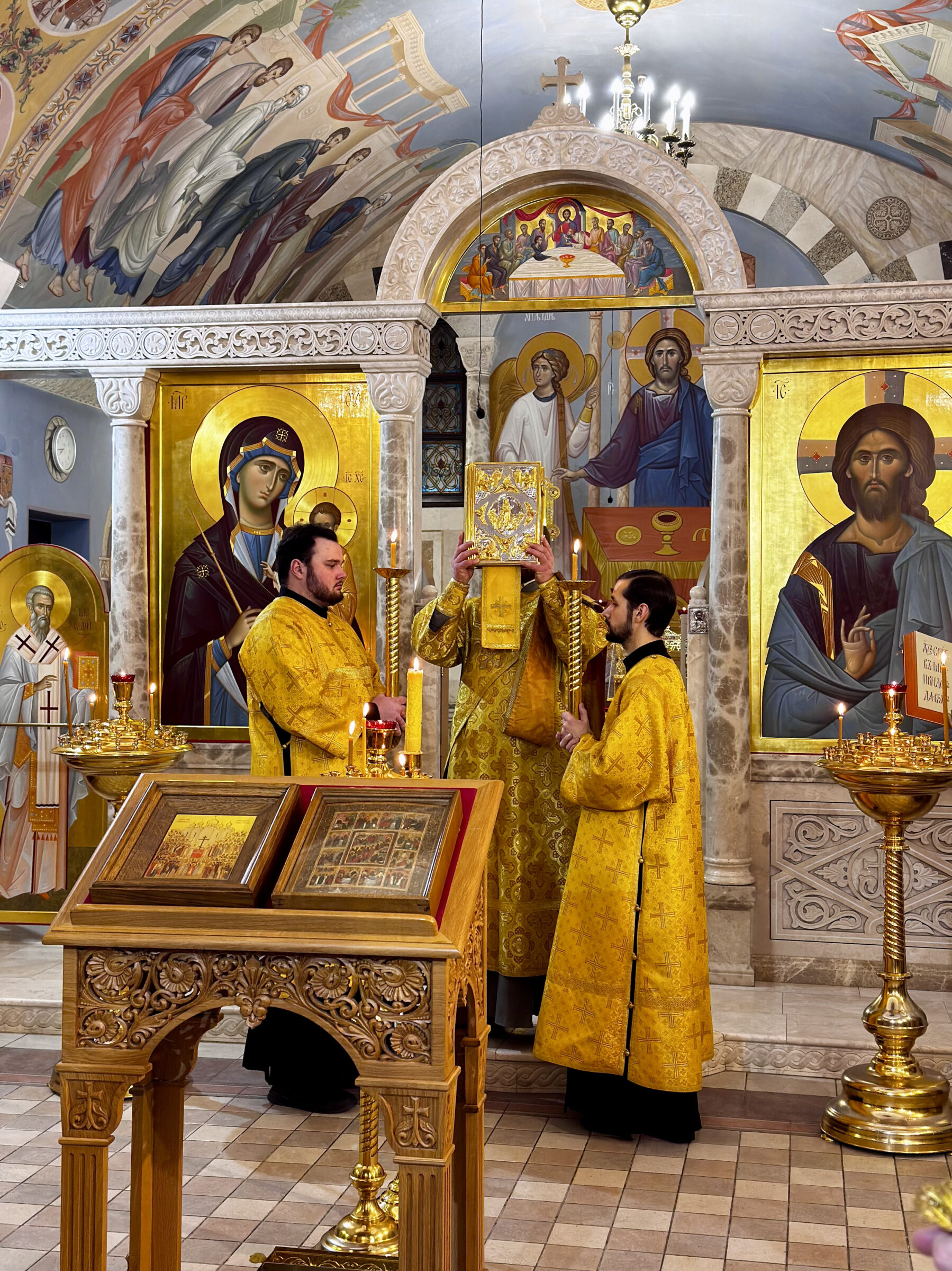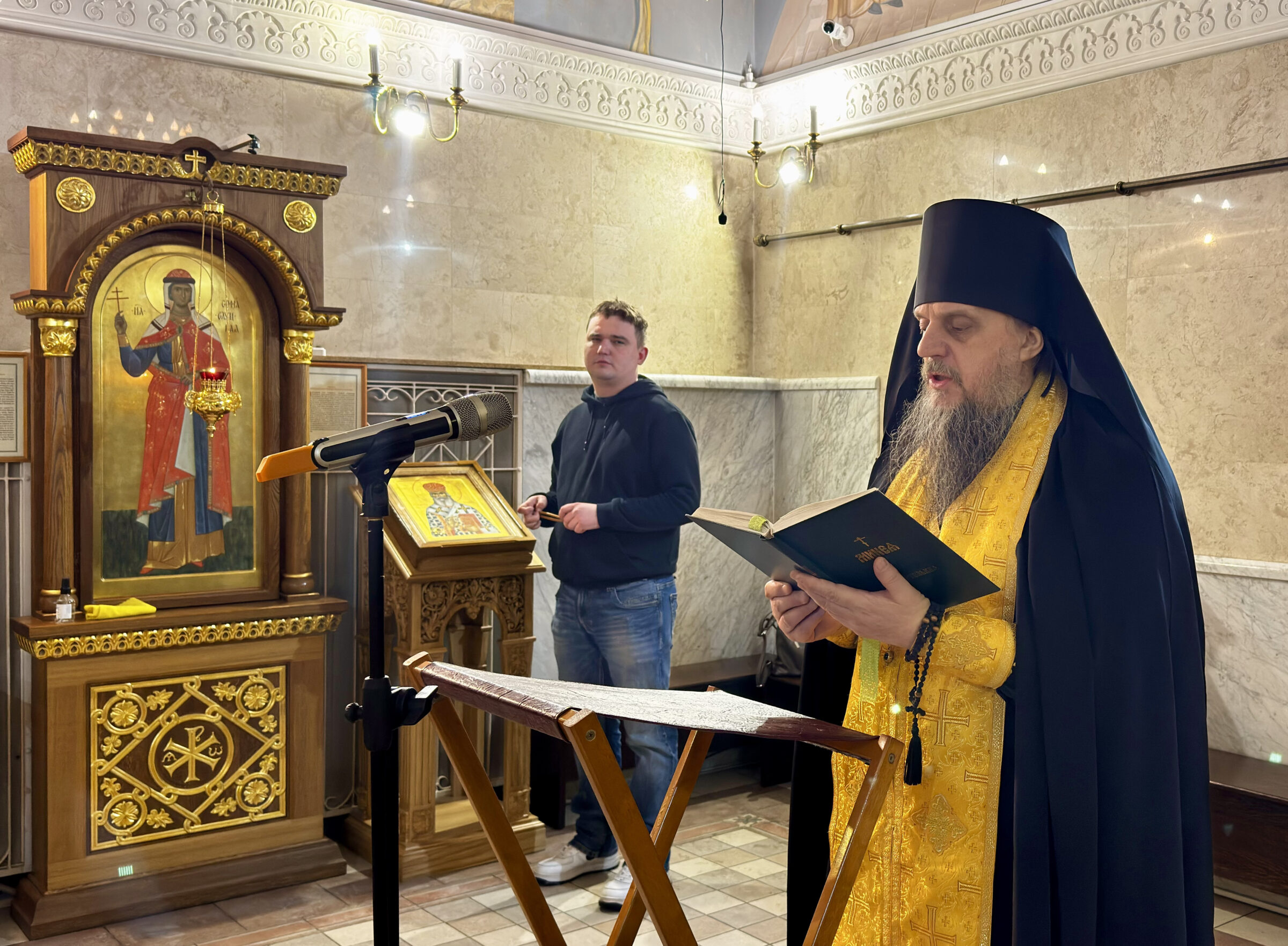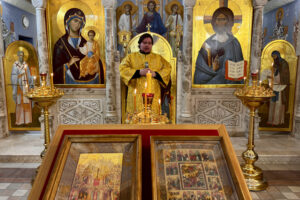 На богослужениях с проповедью обратились студенты 1 курса магистратуры чтец Арсений Автушенко (на всенощном бдении) и чтец Артемий Логинов (на Божественной литургии).
