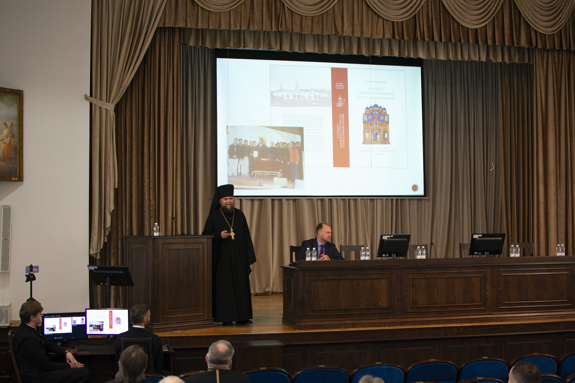 В ходе выступления состоялась презентация книги игумена Дионисия «В защиту соборного устройства Православной Церкви». Лекция была посвящена анализу ложной позиции Константинопольского Патриархата по вопросу теории первенства в православном мире.