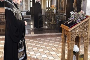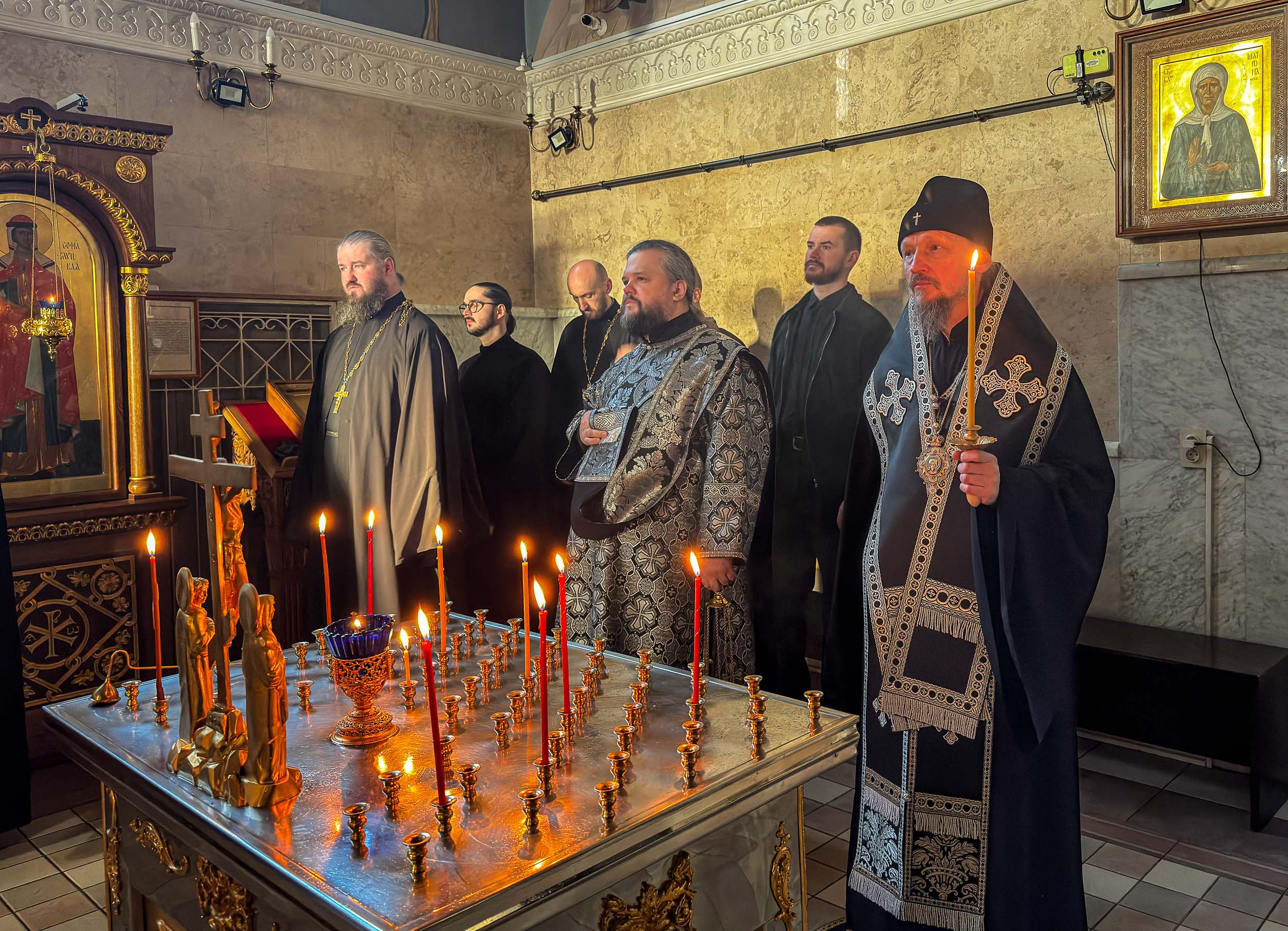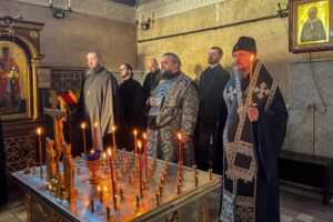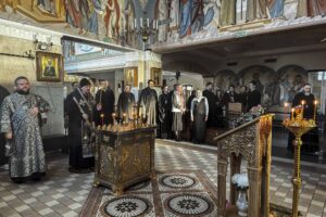 Визит начался с молитвы. В домовом храме в честь святителя Кирилла Туровского митрополит Вениамин совершил литию. Заупокойное богослужение было посвящено памяти Святейшего и Блаженнейшего Католикоса-Патриарха всея Грузии Илии II, скончавшегося накануне.