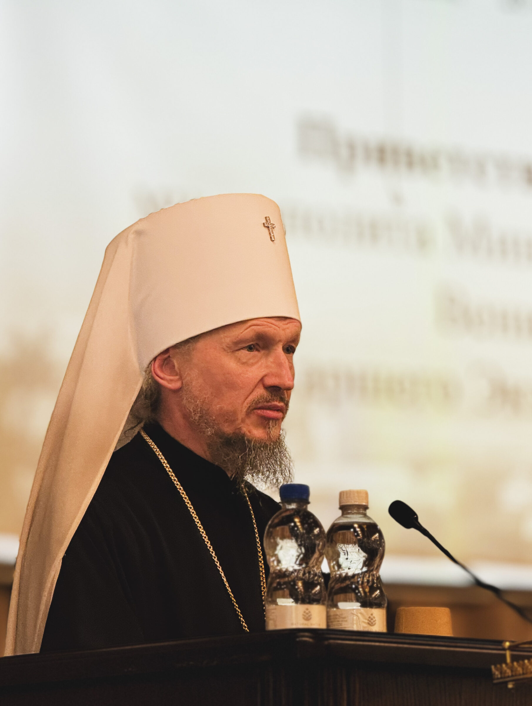 Затем в актовом зале началось пленарное заседание конференции. Со вступительным словом выступил ректор. Далее с приветствием к участникам обратился митрополит Минский и Заславский Вениамин, Патриарший Экзарх всея Беларуси.