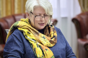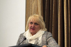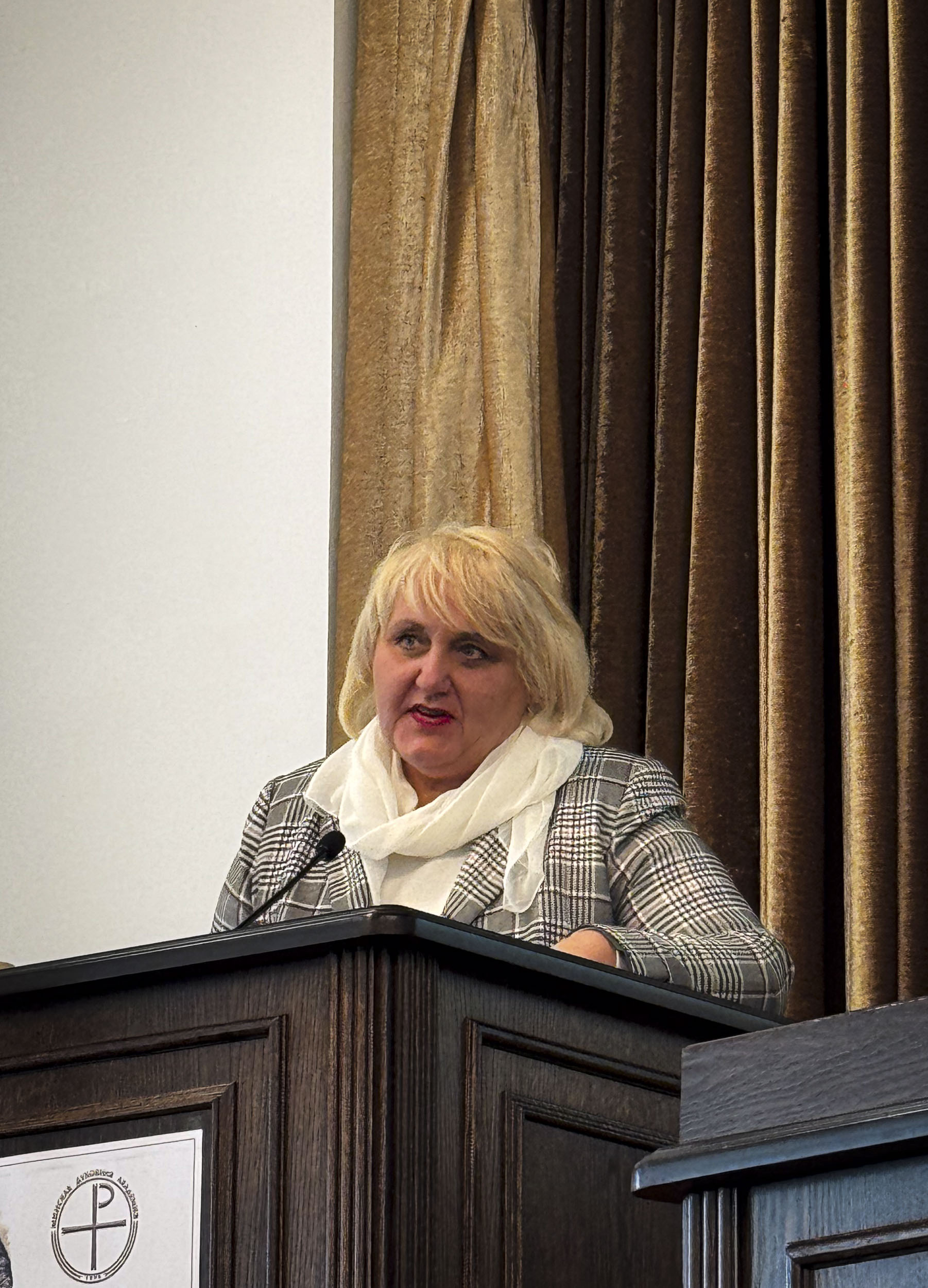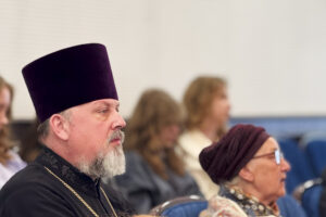 Далее с приветствием выступила С. А. Езерская, председатель Славгородского районного Совета депутатов Могилевской области, которая передала приветствие от земляков протоиерея Иоанна Григоровича.