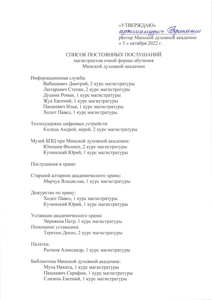 Список постоянных послушаний магистрантов и аспирантов